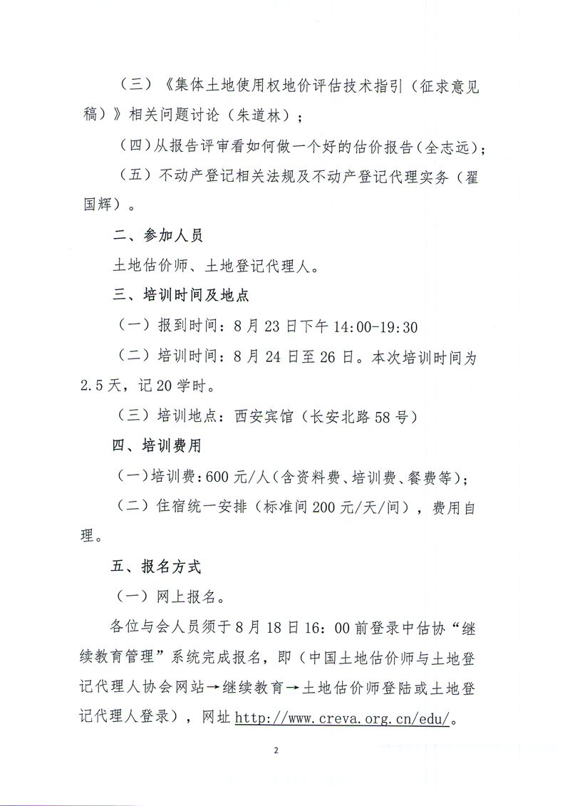 关于举办2016年度西部援助计划和陕西省土地估价师、土地登记代理人第一期继续教育培训班(编号:C54-J)的通知