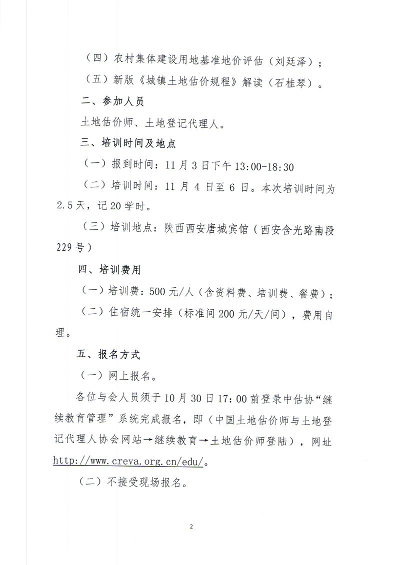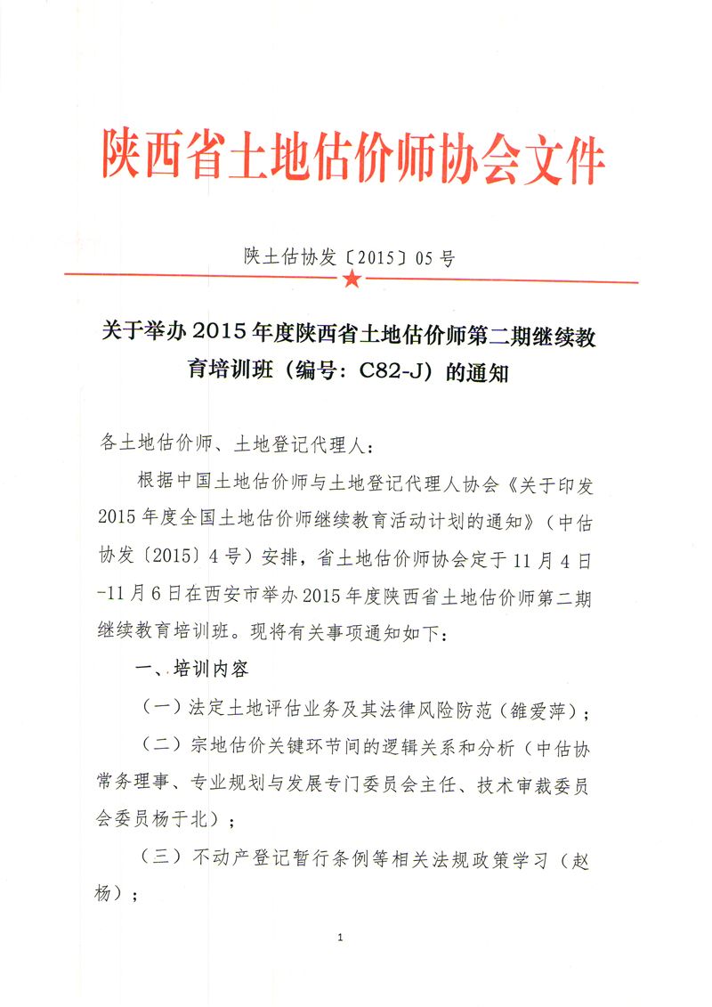 关于举办2015年陕西省土地估价师第二期继续教育培训班(编号:C82-J)的通知