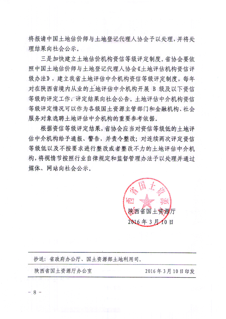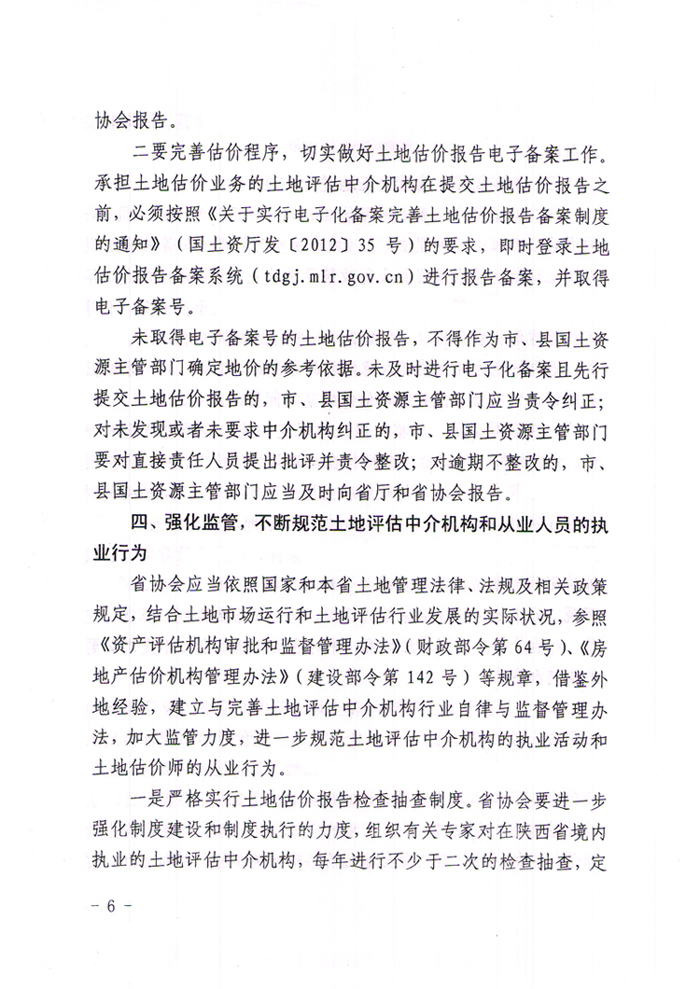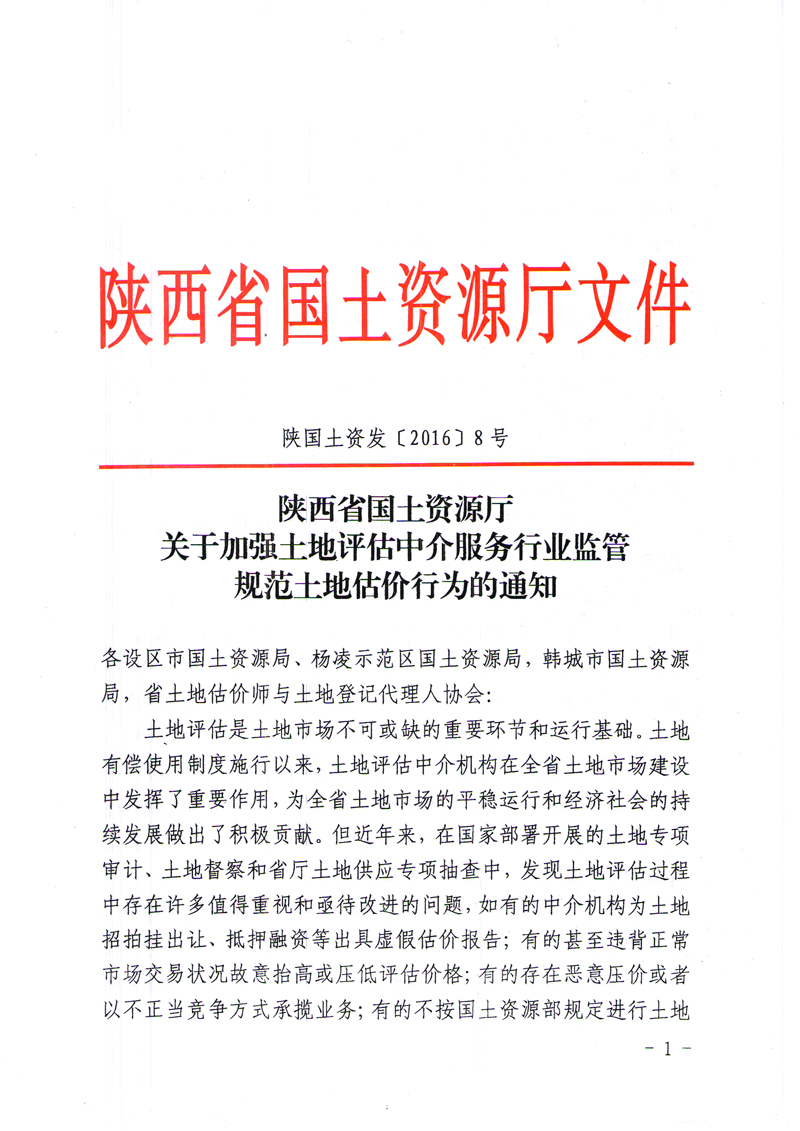 陕西省国土资源厅关于加强土地评估中介服务行业监管规范土地估价行为的通知