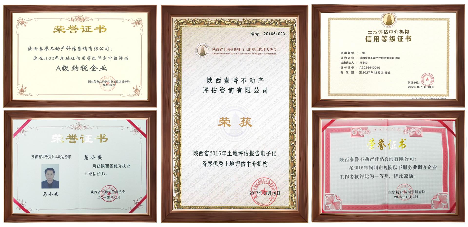 本公司技术力量雄厚,实践经验丰富,执业水平受到相关政府部门及委托单位的好评。已被陕西省高级人民法院选任为委托评估机构,已入围多家金融机构。2014年被陕西省土地估价师协会评为优秀土地评估机构,估价师马小安、周巧云荣获陕西省优秀估价师称号;2015年-2016年连续两年被国家统计局铜川调查队工作考核评比为一等奖;2016年陕西省土地评估报告电子化备案优秀土地评估中介机构;2020年获得年度A级纳税企业;2026年获得土地评估中介机构信用等级一级资信。