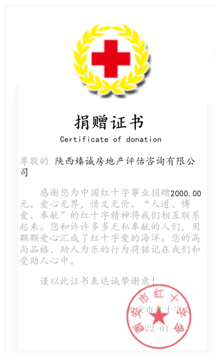 自2021年12月9日以来,新冠疫情的严峻形势让古城西安不见了往日的人流喧闹和熙熙攘攘,打开窗子,入耳的是防疫宣传广播,看见的是穿梭在楼宇之间的疫情防控人员和志愿者。面对无情的新型冠状病毒,我公司为疫情防控捐赠一份爱心,向西安市红十字会捐出一笔善款,望我们的古城西安早日战胜“新冠”。(陕西臻诚公司 供稿)
