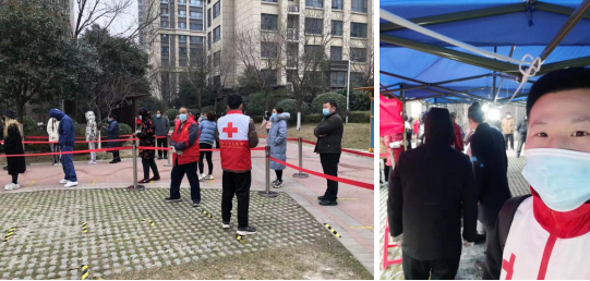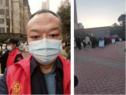 自1月28号至今,党员张成浩一直在居住小区长安区韦曲街道长乐社区做核酸采样维护秩序志愿者活动。